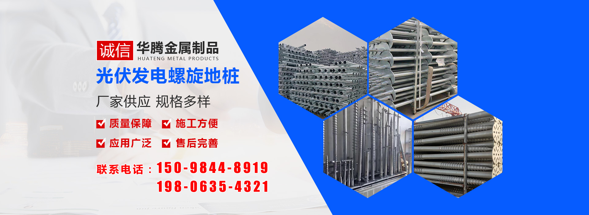 華騰金屬制品 (山東) 有限公司是螺旋地樁公司,主要經營螺旋地樁、光伏地樁等產品,品種規格齊全,并可根據客戶的需求、圖紙、樣品研發產品。